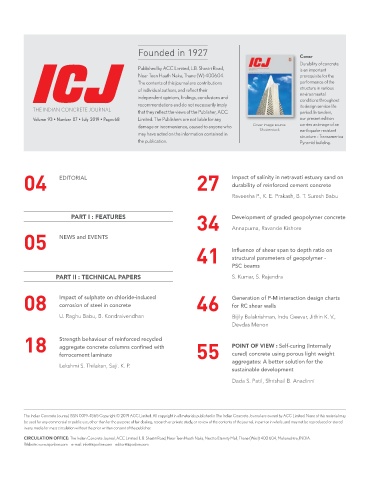 The Indian Concrete Journal, ISSN 0019-4565 Copyright © 2019 ACC Limited. All copyright in all materials published in The Indian Concrete Journal are owned by ACC Limited. None of this material may