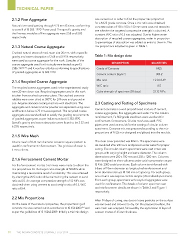 2.1.3 Natural coarse Aggregate mix proportions adopted is given in Table 1.