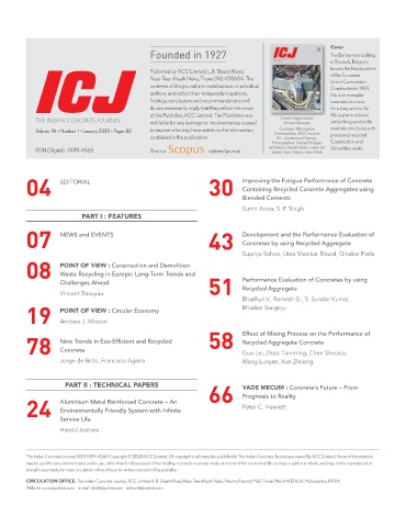 THE INDIAN CONCRETE JOURNAL not liable for any damage or inconvenience, caused Cover image source: similar long service life