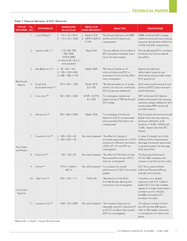 Table 1: Flexural Behavior of ECC Elements