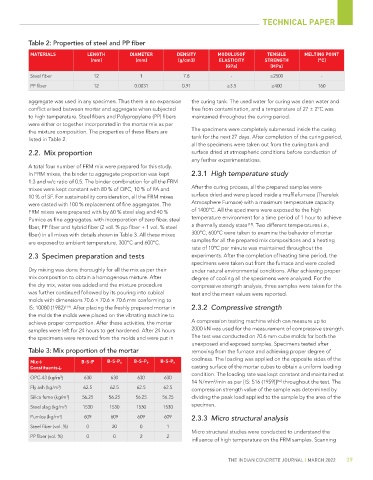 to high temperature. Steel fibers and Polypropylene (PP) fibers maintained throughout the curing period.