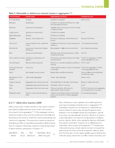 Table 5: Metastable or deleterious minerals/ phases in aggregates [1,40]