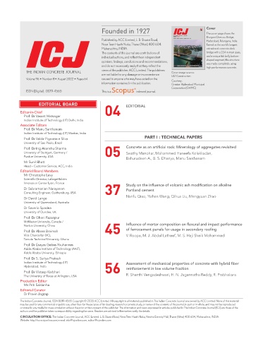 CIRCULATION OFFICE: The Indian Concrete Journal, ACC Limited. L. B. Shastri Road, Near Teen Haath Naka, Next to Eternity Mall, Thane (West) 400 604, Maharashtra, INDIA.
