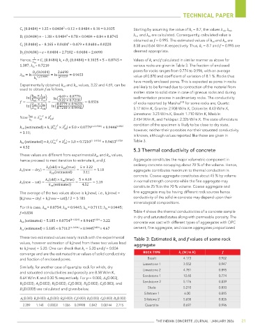 k es (estimated) = 5.185 × 0.7112 (1–0.834) × 0.9445 0.834 = 4.67 cement, fine aggregate, and coarse aggregates proportioned