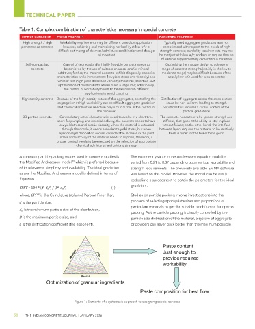 Table 1: Complex combination of characteristics necessary in special concrete