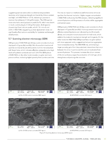 with fewer holes, which indicates effective compaction plus high between the silica in pumice and the calcium hydroxide from