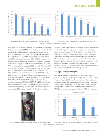 pumice was substituted. The M50-PA40 mix strength dropped split tensile strength tests on cylinder specimens.