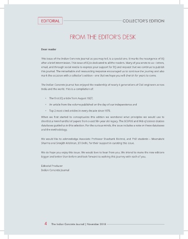 This issue of the Indian Concrete Journal as you may tell, is a special one. It marks the resurgence of ICJ