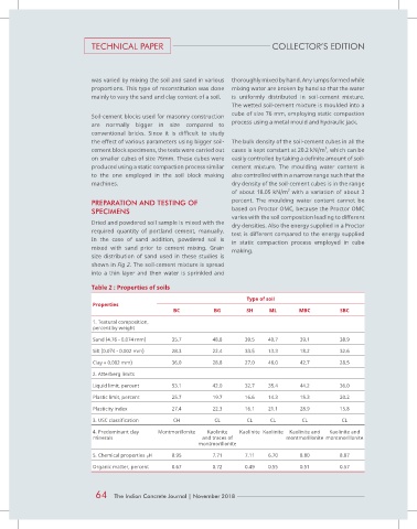 Soil-cement blocks used for masonry construction cube of size 76 mm, employing static compaction