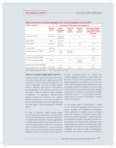 Table I : Properties of recycled aggregate and recycled aggregate concrete (RAC)